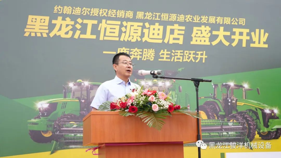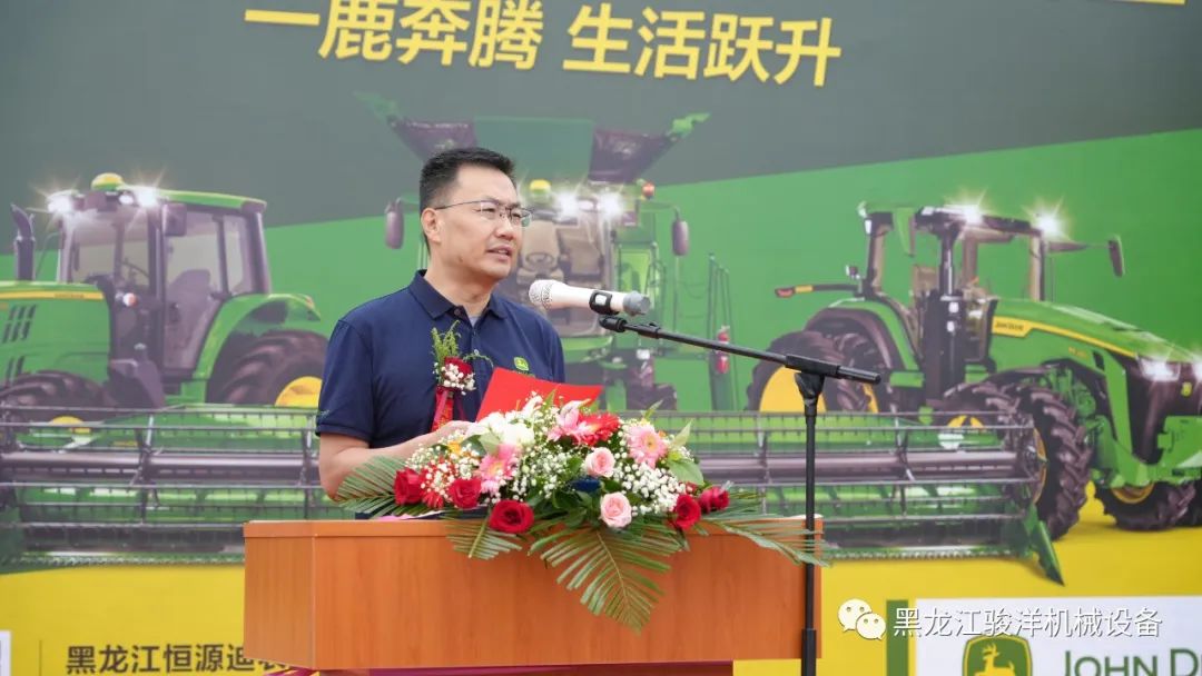 黑龍江恒源迪農(nóng)業(yè)發(fā)展有限公司總經(jīng)理杜立志發(fā)表了開場致辭(下圖)。他表示,作為迪爾授權(quán)經(jīng)銷商,恒源迪農(nóng)業(yè)將不負約翰迪爾公司和用戶朋友的信任與期待,砥礪前行、全心全力的將迪爾品牌的核心價值觀“誠實、優(yōu)質(zhì)、守信、創(chuàng)新”發(fā)揚光大。公司有著完備的市場推廣、售后服務、配件供應體系和經(jīng)驗,相信會給用戶帶來更好的產(chǎn)品使用體驗,讓用戶創(chuàng)造更大收益,為黑龍江現(xiàn)代農(nóng)業(yè)特別是農(nóng)機現(xiàn)代化的發(fā)展添磚加瓦。